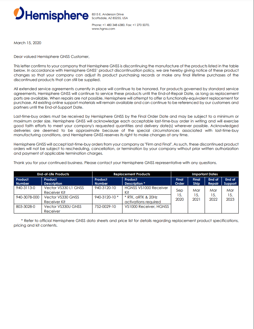 VS330 End of Life Austin Helle September 02, 2023 00:39 Updated Related articles VS330 User Guide Firmware Upgrades VS1000 User Guide R Series End Of Life Notice Why Aren't my RINEX Files working?