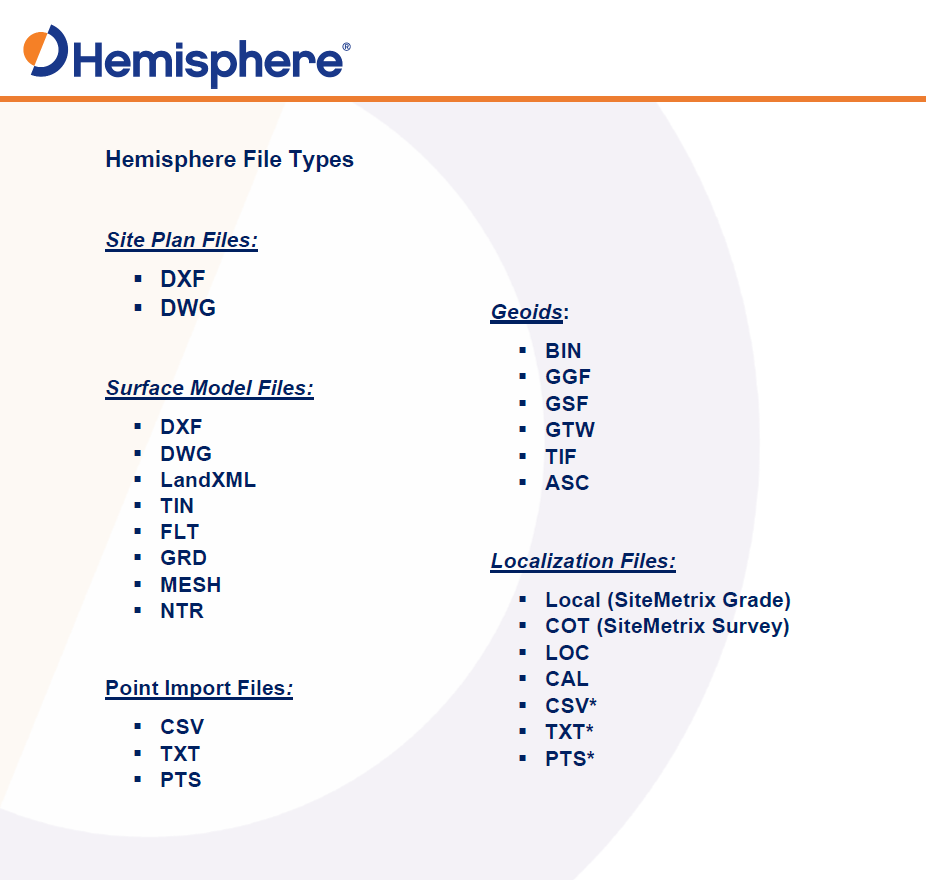 GradeMetrix File Types Austin Helle April 26, 2024 17:44 Updated Related articles GradeMetrix User Guide v1.6.0 SiteMetrix Grade File Types VS1000 User Guide IronOne Solutions Manual Excavator Installation Guide